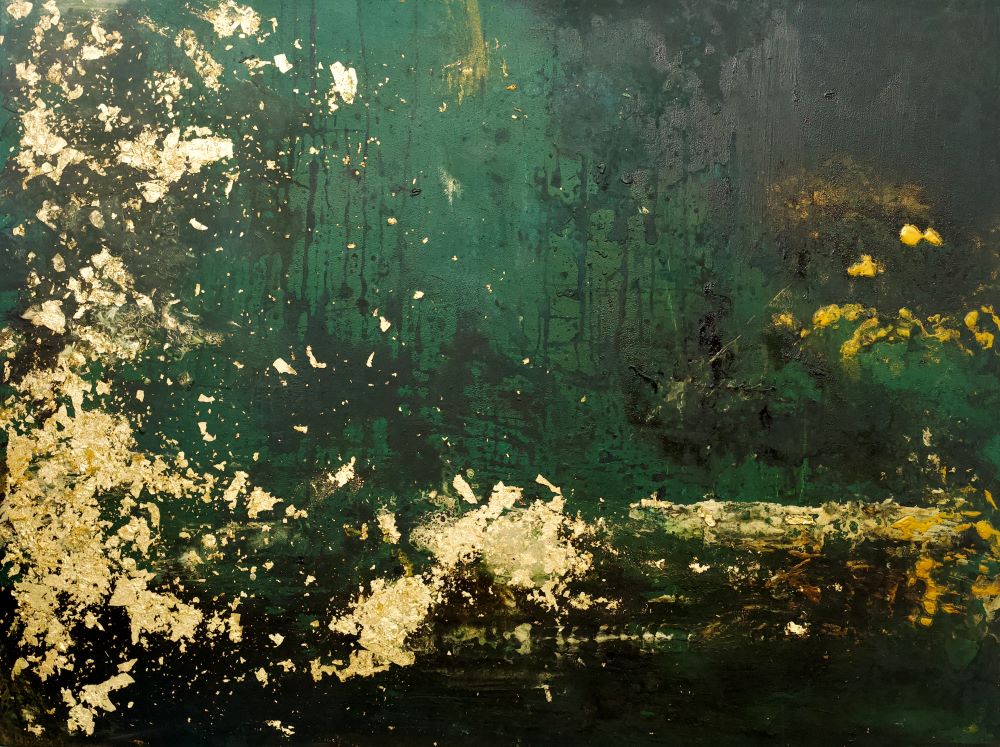 ‘Emerald‘ 120 x 90cm, Acrylic Oil and Gold Leaf