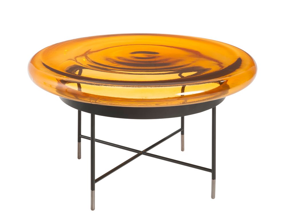 With a mushroom-shaped blown glass top, the BILBOQUET cocktail table adds whimsy and elegance in either coloured or clear finishes (Ø70 × H40 cm).