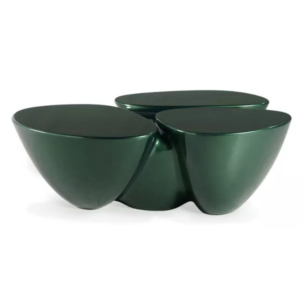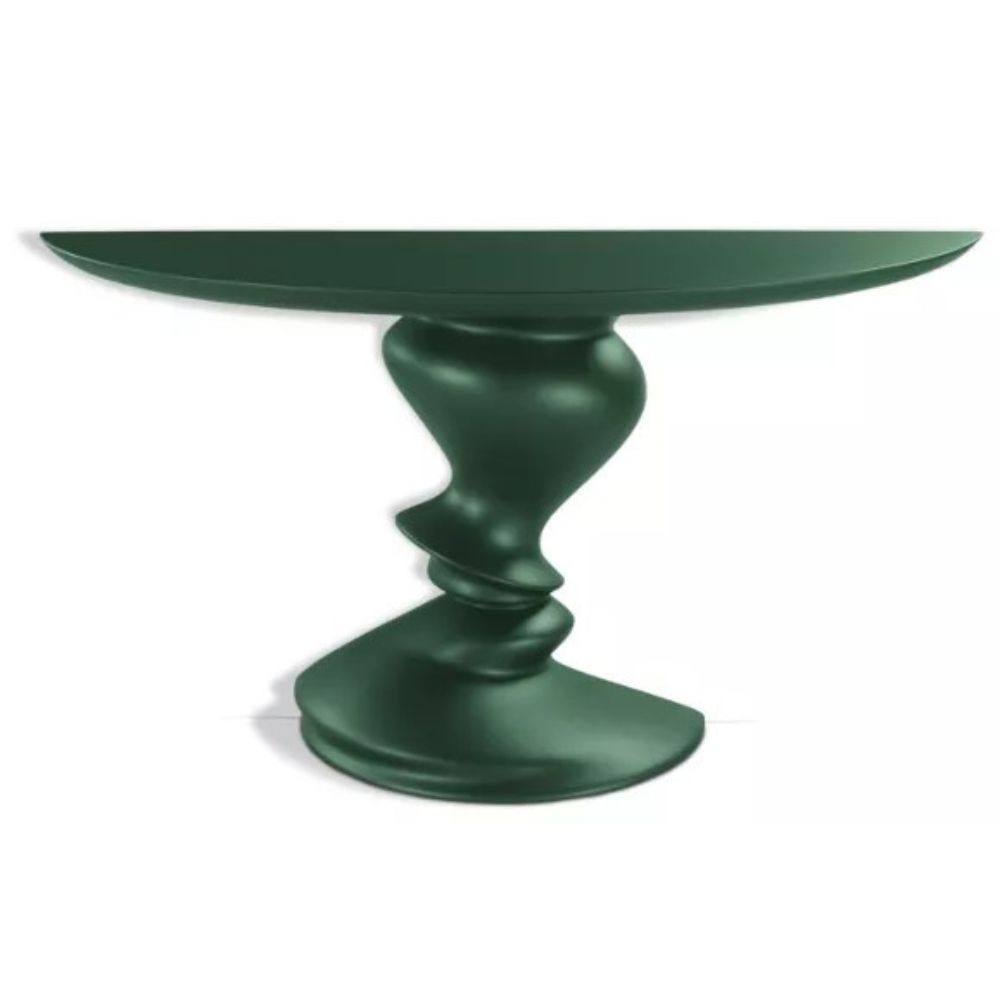 Made from lacquered polyester resin, the DALIA table offers bold curves and a glossy sculptural presence (W103 × H33 × D88 cm).