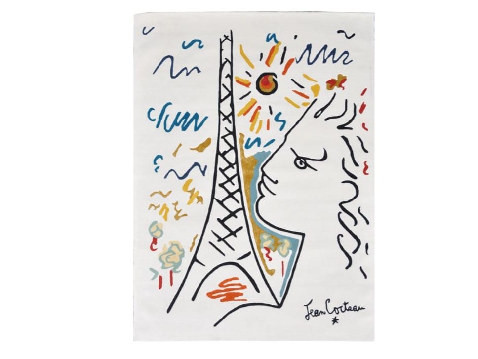 Hand-tufted in New Zealand wool, this rug translates Cocteau’s “Profil à la Tour Eiffel” artwork into a rich and tactile textile (Small and Large sizes available).