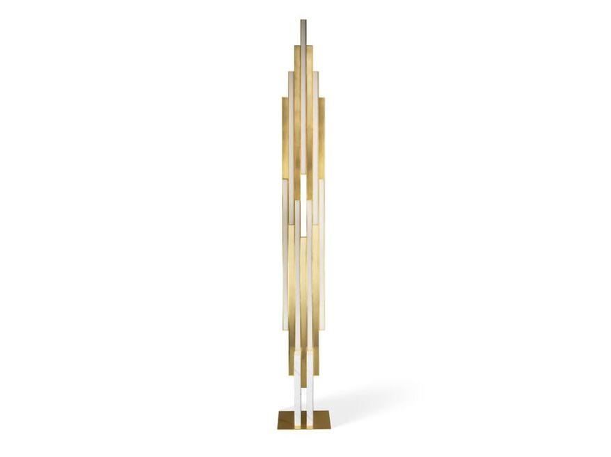 Designed by Fabrice Berrux, LIMELIGHT features a white marble base, gold-tone aluminium structure, and adjustable LED lighting—bringing a curated glow to any space (W18 × H198 × D21 cm).