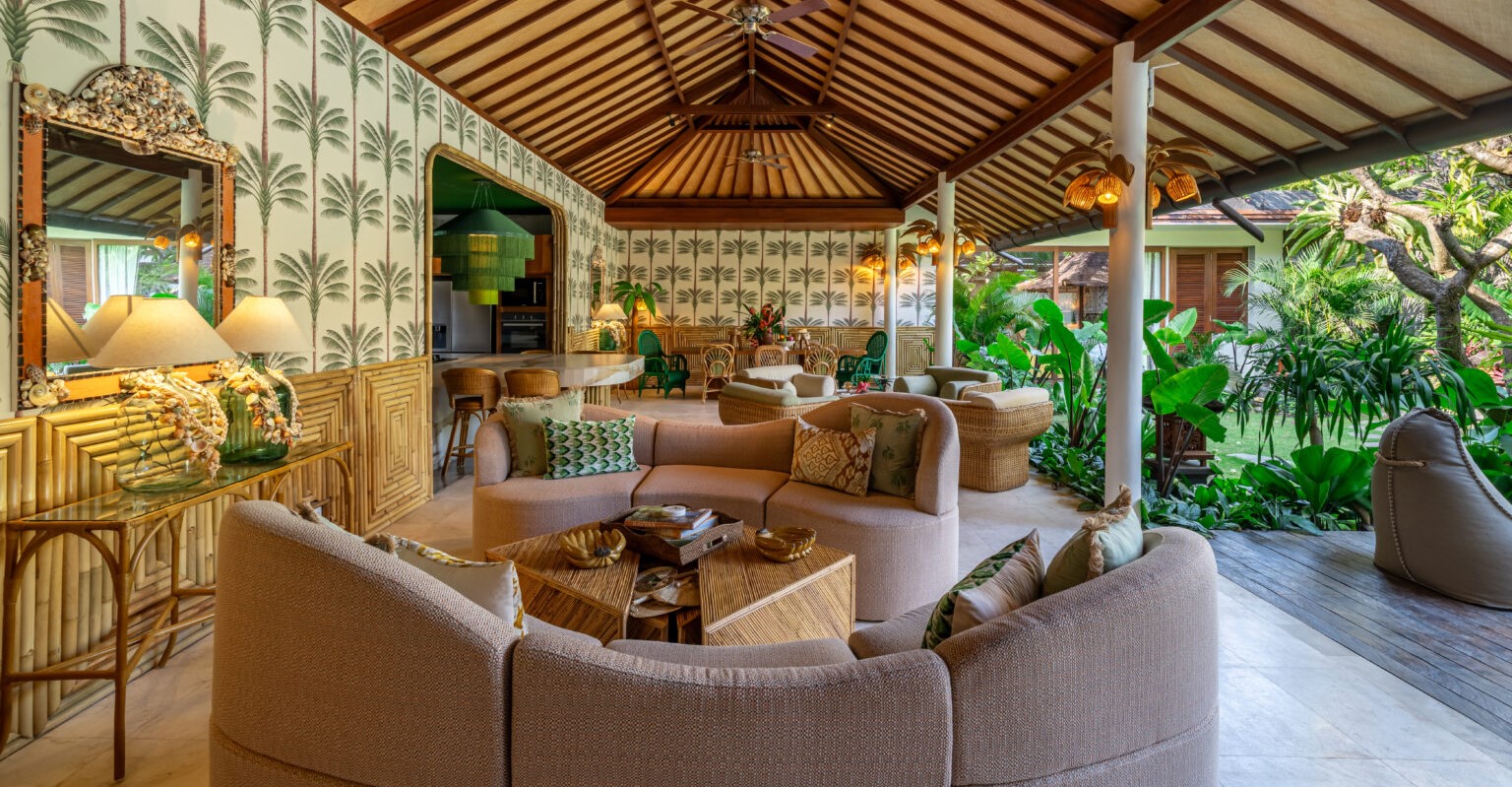 The primary living space, which adjoins a sleek kitchen with green granite bench tops is nothing short of spectacular. An upper level void provides the space for iron-wood posts to soar 8 meters in height forming virtual walls which provide the only barrier between the home and the surrounding jungle, allowing you to relax in luxury whilst completely immersing yourself in the environment, gazing at the stars, moon and swaying palm trees above.