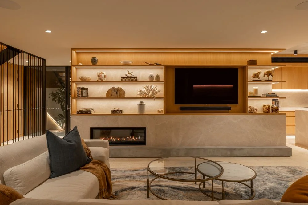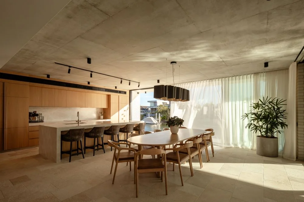 Built by St Andrews Constructions, the exceptional 650sqm residence is beautifully attuned to its subtropical setting, opening to the water, the breeze, and that soft Queensland light. Yet beyond that openness, the home reveals a luxurious, almost decadent undertone: rich textures, crafted finishes, and spaces that effortlessly shift from laid-back daytime living to moodier, intimate evenings. It’s a home designed to enjoy, to escape in, and to entertain in absolute style.