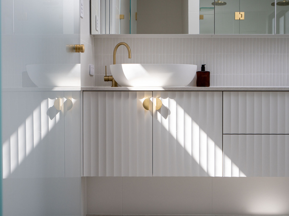 The connection to the garden is central. Large sliding doors retract into concealed wall cavities so the living areas can open fully to the alfresco spaces. Getting this right meant careful coordination of the cavity door systems so they disappear when open and line up cleanly when closed. The same attention was given to the skylights, positioned to lift natural light while managing heat gain, they work with the louvre system in the void to support passive comfort rather than relying solely on mechanical cooling. It’s a small detail in theory but one that makes a world of difference in the living experience.