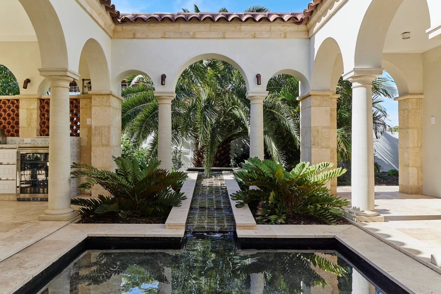 Precision formed arches define this extraordinary home both inside and out. They align perfectly through hallways and doorways, framing views that reveal the home’s extraordinary symmetry.